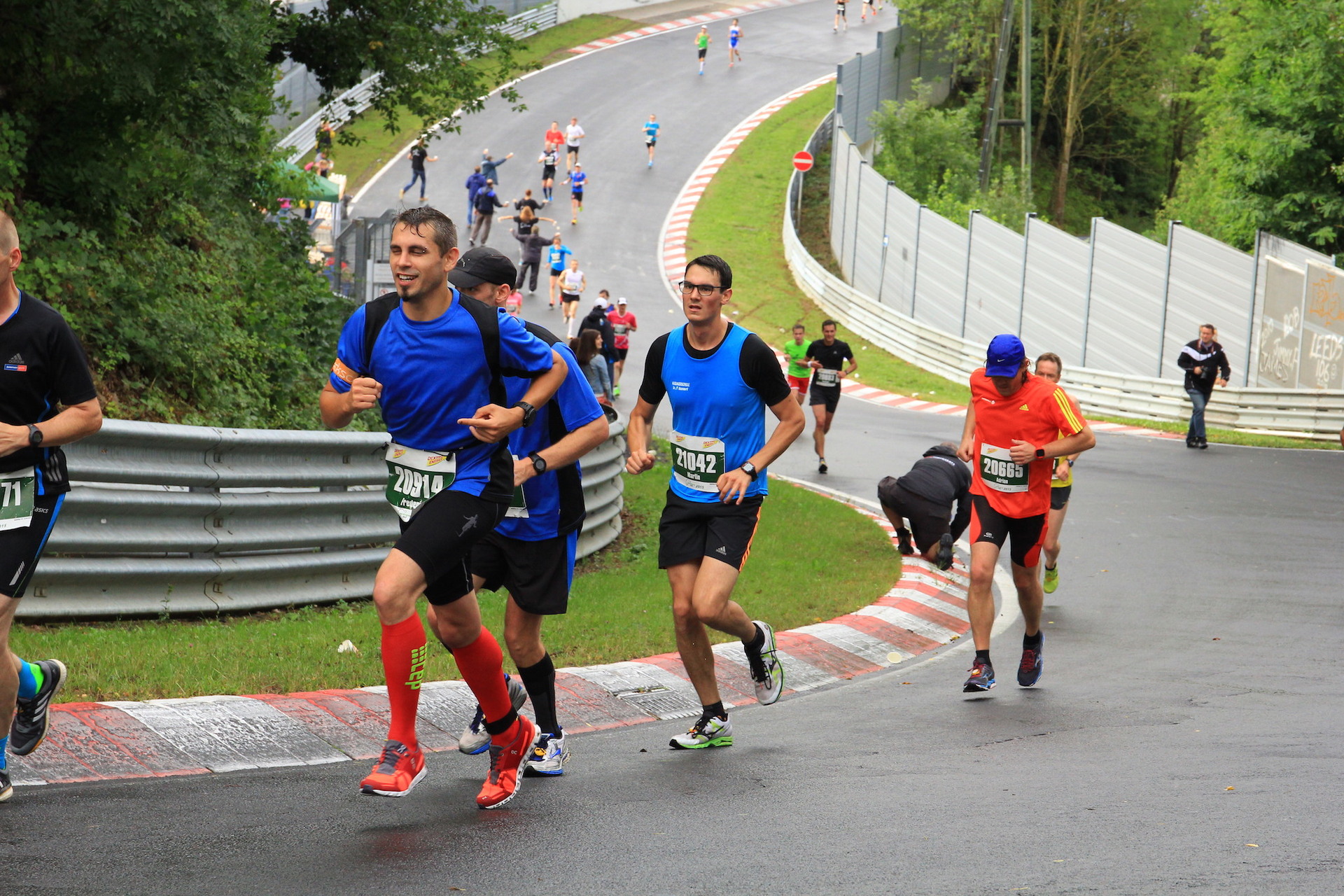 Seit 2012 laufe ich mit meinen Arbeitskollegen jedes Jahr die Staffel beim METRO GROUP Marathon in Düsseldorf mit. Neben dieser gemeinschaftlichen Laufveranstaltung nimmt unsere Firma auch schon seit Jahren beim Radrennen "Rund um Köln" und am 24-Stunden-Radrennen "Rad am Ring" teil. Mein Chef und zwei Arbeitskollegen haben in den vergangenen Jahren auch schon per Pedes die grüne Hölle des Nürburgrings bezwungen und deswegen brachte ich den Lauf bei unserem Essen nach dem METRO GROUP Marathon nochmals ins Gespräch, in der Hoffnung eventuell ein paar Mitstreiter zu finden, die mit mir dort laufen würden. Ich fand die Idee aufgrund der Streckenlänge und natürlich überhaupt wegen der Strecke reizvoll. Wie hart diese Strecke aufgrund der Höhenmeter ist, war mir zu dem Zeitpunkt noch nicht ganz klar.